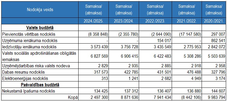 Veiktās iemaksas valsts vai pašvaldības budžetā, EUR