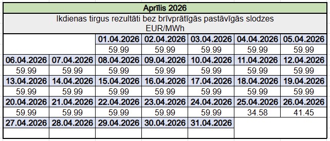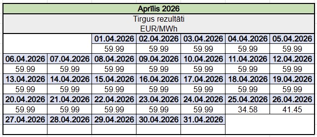 Periodā no 13.04.2024. plkst.00.00 līdz 20.04.2024. plkst.00.00 siltumenerģija 23527 MWh apjomā tiks iepirkta par vidējo cenu 47,67 EUR/MWh.