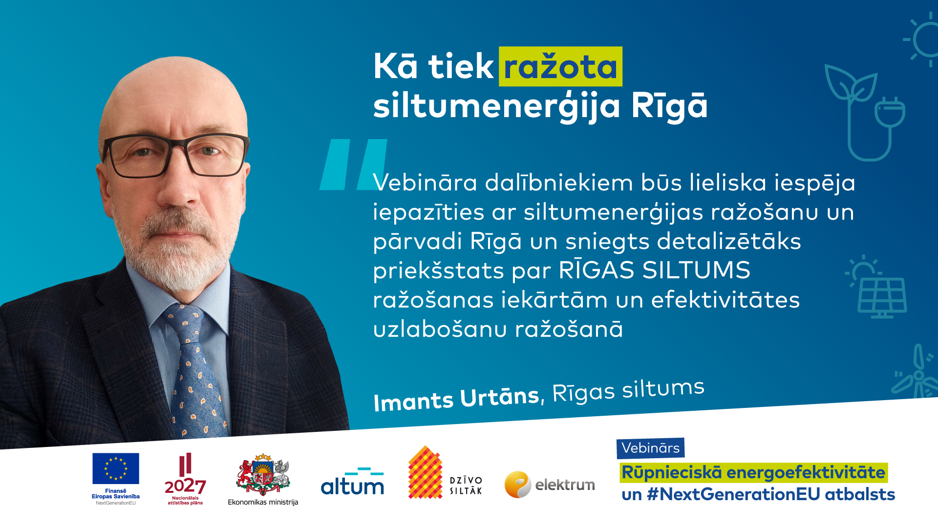 2025.gada 26.novembrī Ekonomikas ministrija, Attīstības finanšu institūcija Altum un Elektrum Enerģijas centrs aicina uz vebināru “Rūpnieciskā energoefektivitāte un hashtag#ESfondi atbalsts”.