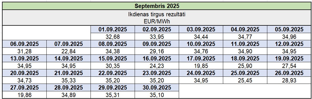 Periodā no 01.09.2023. plkst.00.00 līdz 02.09.2023. plkst.00.00 siltumenerģija 1900 MWh apjomā tika iepirkta par vidējo cenu 30,39 EUR/MWh.