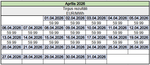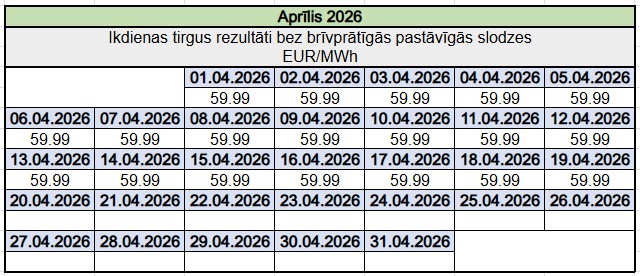 Ikdienas tirgus rezultāti bez brīvprātīgās pastāvīgās slodzes