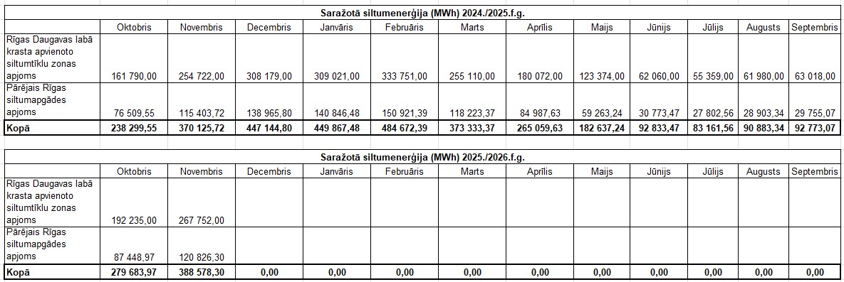 Periodā no 12.10.2024. plkst.00.00 līdz 19.10.2024. plkst.00.00 siltumenerģija 26723 MWh apjomā tika iepirkta par vidējo cenu 51,88 EUR/MWh.